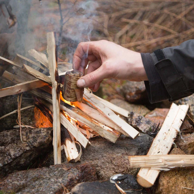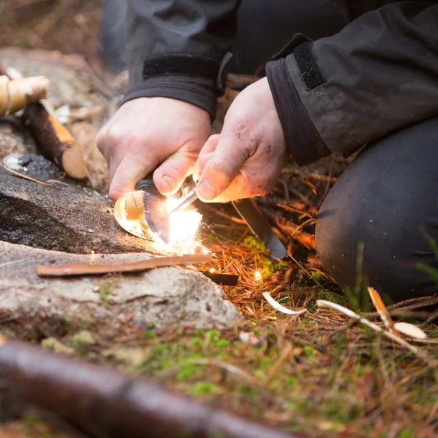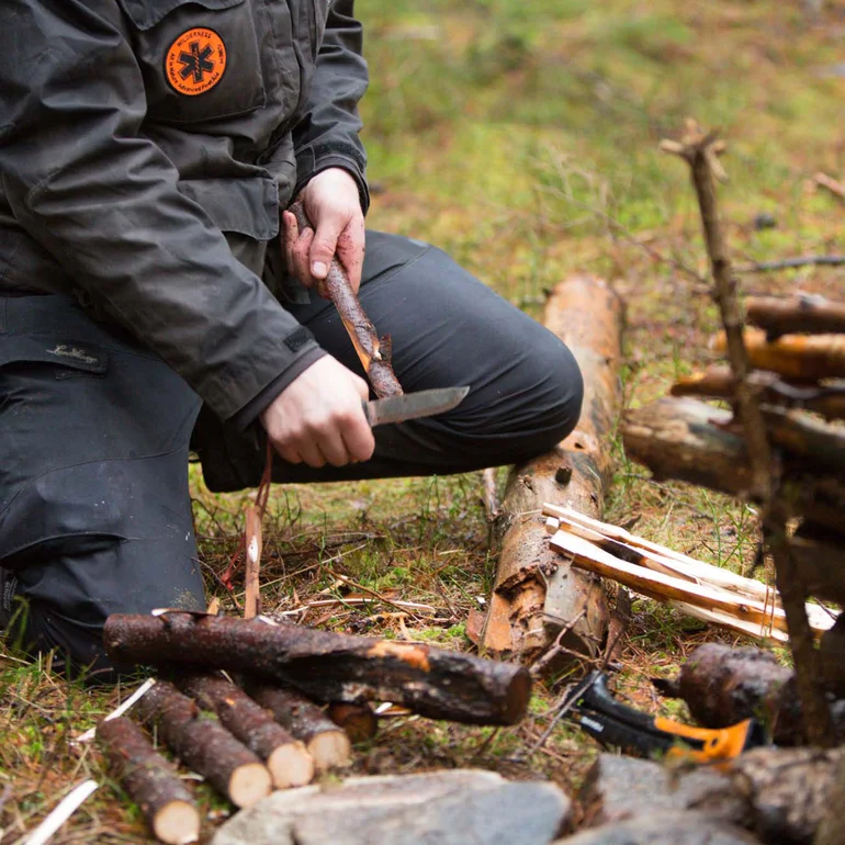 In vielen Naturschutzgebieten und Außenbereichen gibt es Brennholz an Feuerstellen, Windschutzvorrichtungen oder Übernachtungshütten. Es ist eine gute Idee, ein Messer dabei zu haben, um größeres Brennholz zu spalten und kleinere Späne zu schnitzen, mit denen Sie das Feuer entzünden können. Unten können Sie unsere Anleitung zum Feuermachen lesen, Schritt für Schritt. Denken Sie aber daran, dass Sie nicht einfach so Brennholz aus der Natur sammeln dürfen. Sie müssen immer überprüfen, welche Regeln für das Gebiet gelten, in dem Sie planen, zu bleiben, und doppelt überprüfen, damit es kein Feuerverbot gibt.