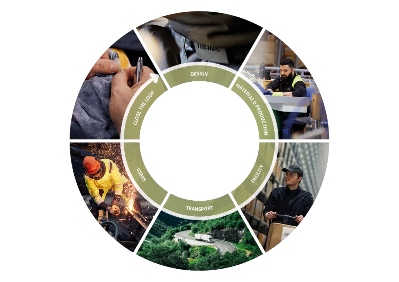 At Fristads, we use a Life Cycle Assessment (LCA) to help us determine areas that can be improved from a sustainability perspective. From the moment we envision a new garment to the day it is discarded we consider the impact it has on the environment and what we can do to minimise the negative effects.