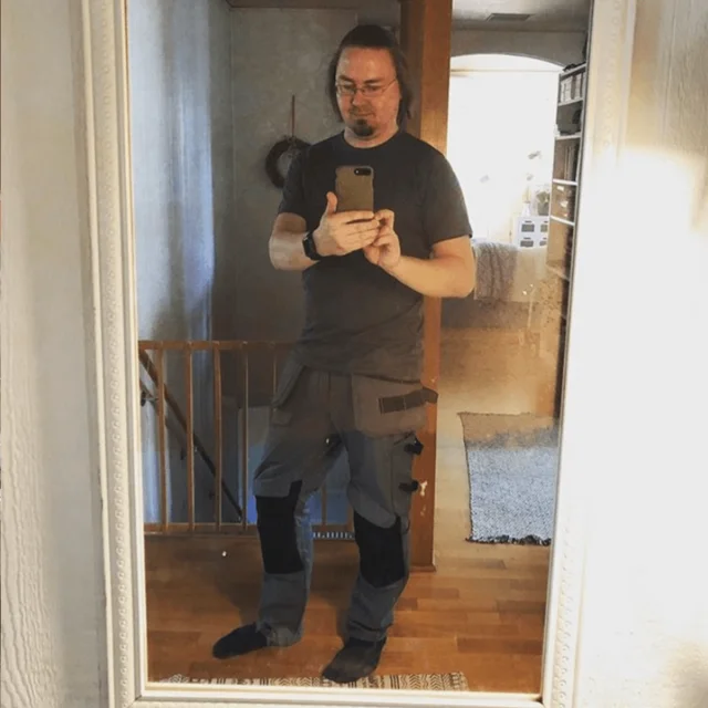 Olen pitänyt Green-malliston rakentajan housuista. Kangas on mukavan pehmeää ja se joustaa hyvin, eikä hiosta työn touhussa. Lisäksi taskuja on sopivasti ja työkalut mahtuvat niihin hyvin. Ulkoasua pidän mukiinmenevänä, ehkä eri värejä olisi hyvä olla. Esimerkiksi maalareille olisi hyvä olla oma Green-mallisto. Testasin myös Green-malliston shortsit ja sporttiset piraattitrikoot polvisuojilla. Mahtava keksintö laittaa polvisuojapaikat trikoisiin! Itsellä ainakin tavallisissa työhousuissa polvisuojat ”valuu” pois paikoiltaan ja saa koko ajan nykiä niitä kohdilleen. Suosittelen lämpimästi.