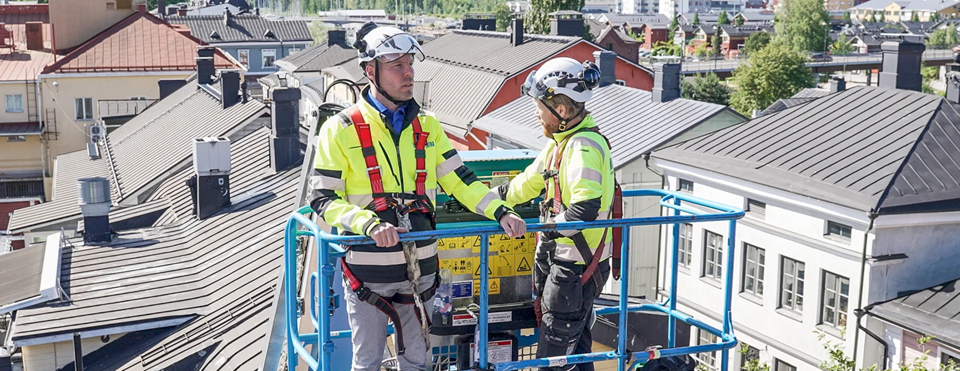 Ruusu ja Venla kokevat, että heidän työvaatteensa ovat laadukkaat, mukavat päällä, hengittävät ja kestävät. Ne myös suojaavat viiltoja ja naarmuja vastaan, joita katolla tapahtuu.