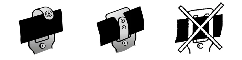 Aseta painonappien toinen puoli vyön päälle. Paina kiinni takapuolelta. Taskut ja pidikkeet on asennettu oikein, kun metalliniitit ovat etupuolella näkyvillä.