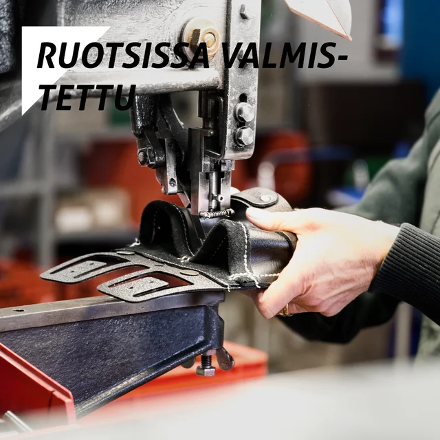 Kaikki mustat työkaluvyöt, tarviketaskut ja pitimet tehdään Ruotsissa. Nämä tuotteet on tehty pehmeästä erikoisnahasta, joka on kestävää ja pinta vettähylkivää.
