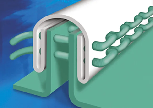 Notre couture liée est une version améliorée de la couture standard. Cette couture s’apparente à un rabat et offre ainsi une meilleure imperméabilité. Elle est également plus résistante, ses deux rangées de piqûres traversant six couches de tissu. Elle est plus sûre car des filaments de carbone sont tissés dans la couture, de sorte à assurer une bonne évacuation de l’électrostatique, y compris après de nombreux lavages.