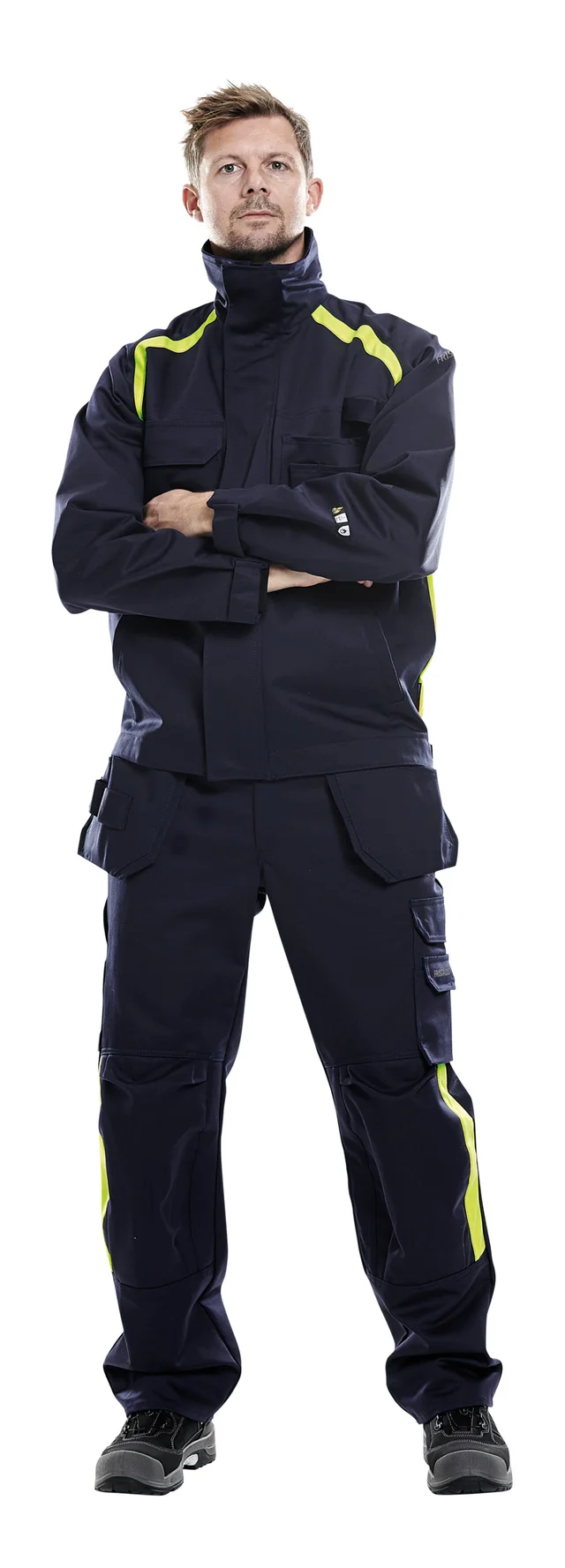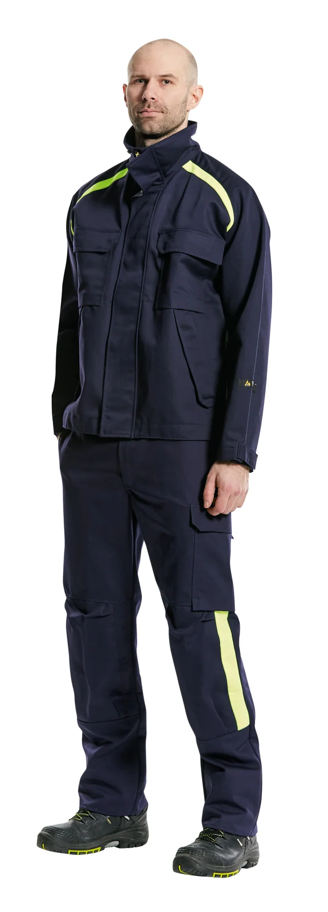 - Le ruban réfléchissant sur nos vêtements ignifuges est ignifuge et approuvé selon les normes EN ISO 14116, EN 469 et EN 471/EN ISO 20471.