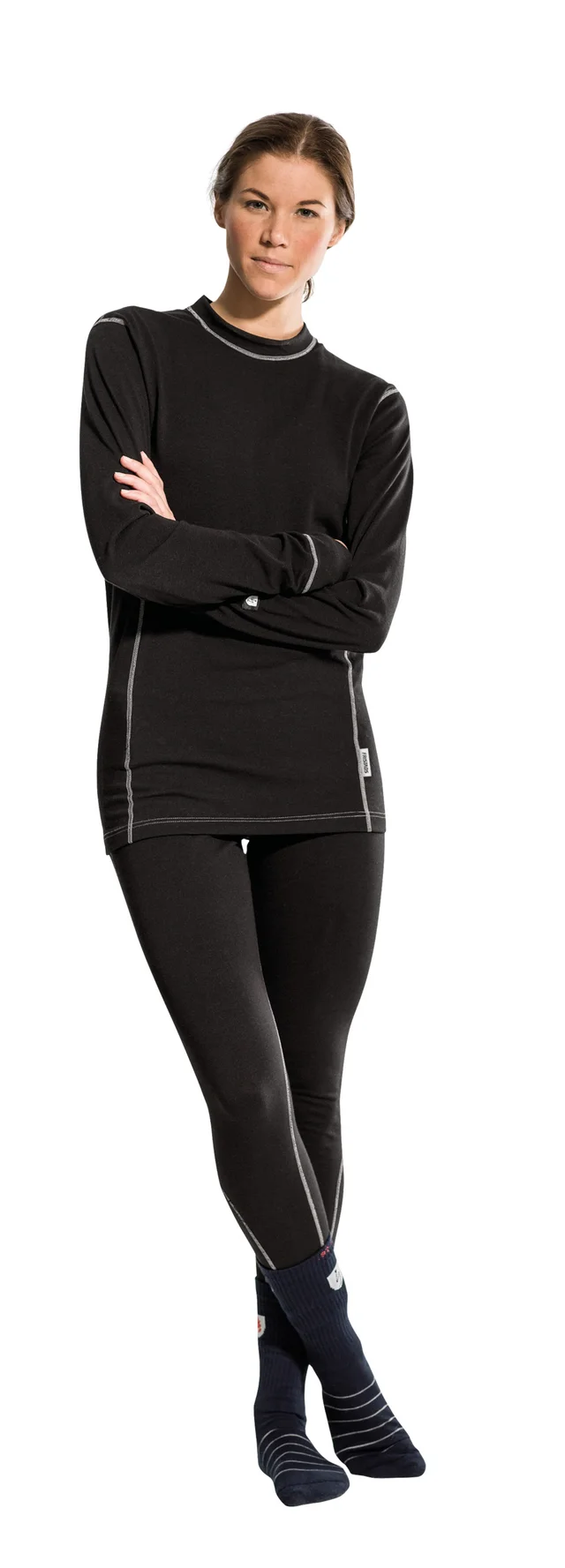 Devold® UD est un matériau utilisé pour les sous-vêtements ignifuges Fristads. Il s'agit d'un tissu élastique tricoté à côtes en viscose, laine mérinos, fibres antistatiques et polyamide qui protège contre la chaleur / flammes et l'arc électrique.