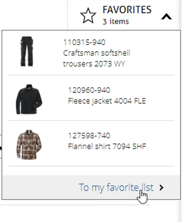 Vai alla tua lista dei preferiti cliccando sul tasto "Preferiti", posizionato accanto al carrello. Quindi fare clic su "Alla mia lista dei preferiti" per procedere.