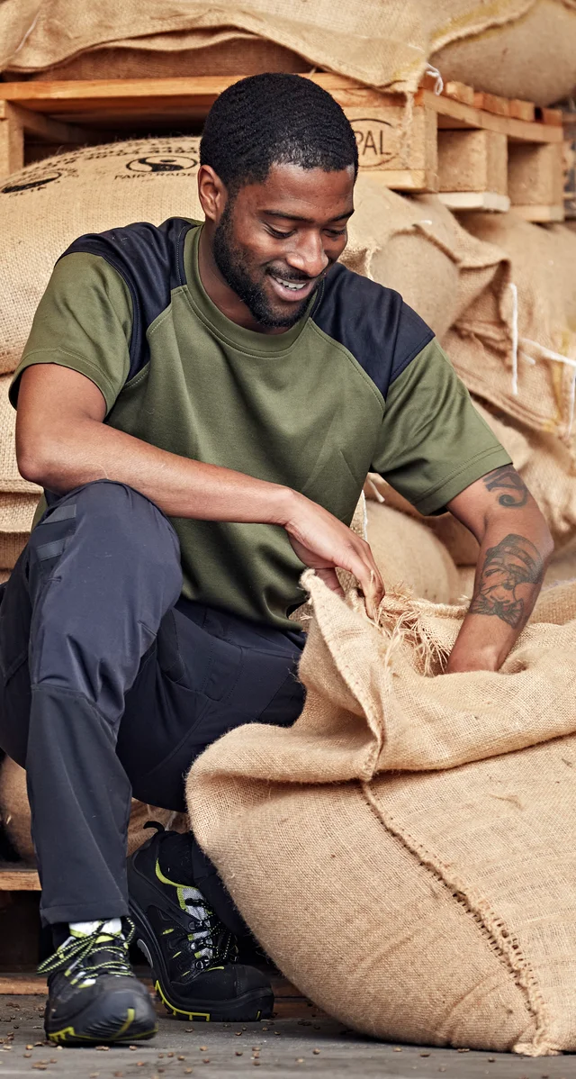 werkkleding in de kleur legergroen.