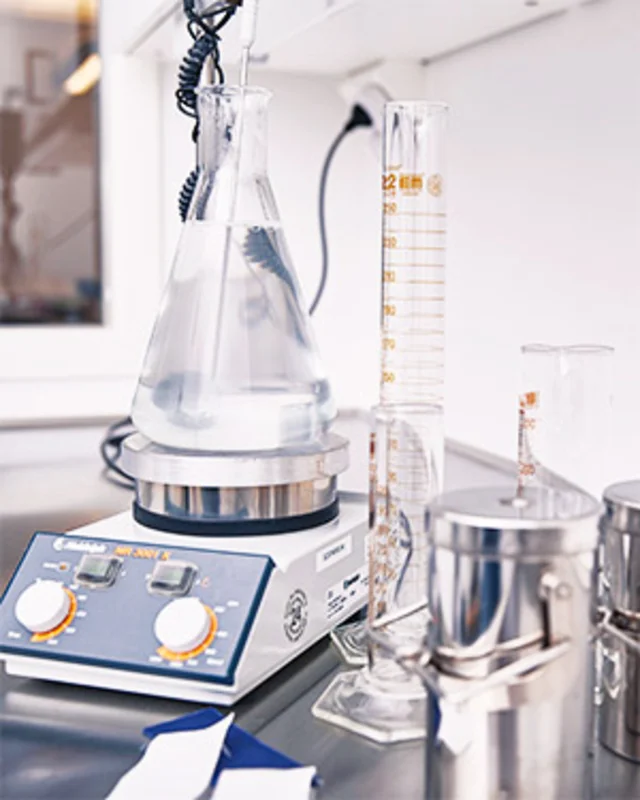 Het stofmonster wordt onder een hoek van 45 graden in een sproeitester geplaatst. Vervolgens wordt er een bepaalde hoeveelheid water op de stof gesproeid met een constante stroomsnelheid. De natheid van het monster wordt beoordeeld op een schaal van 1 tot 5.